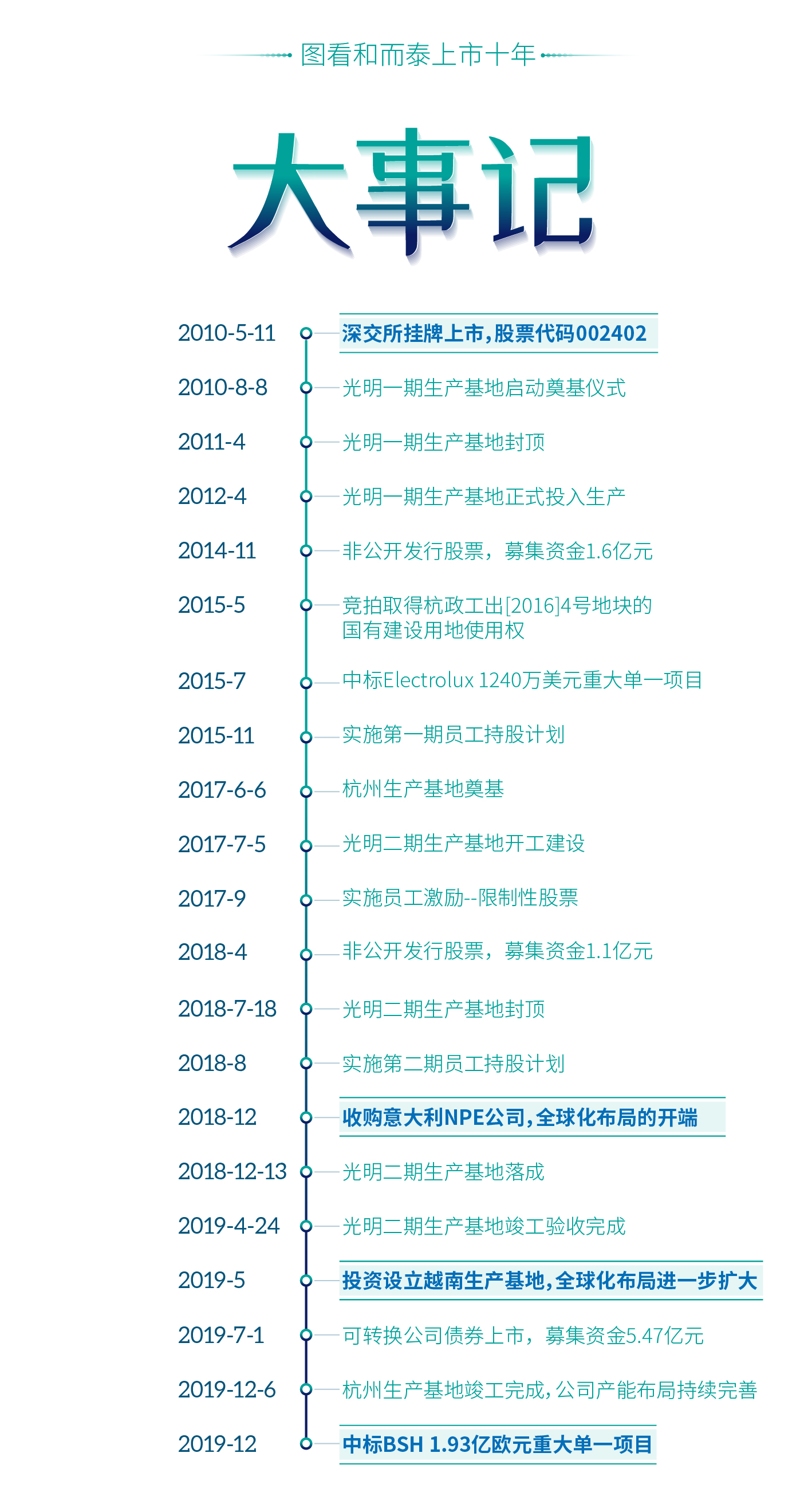 光榮與夢想,和而泰上市十周年大事記
